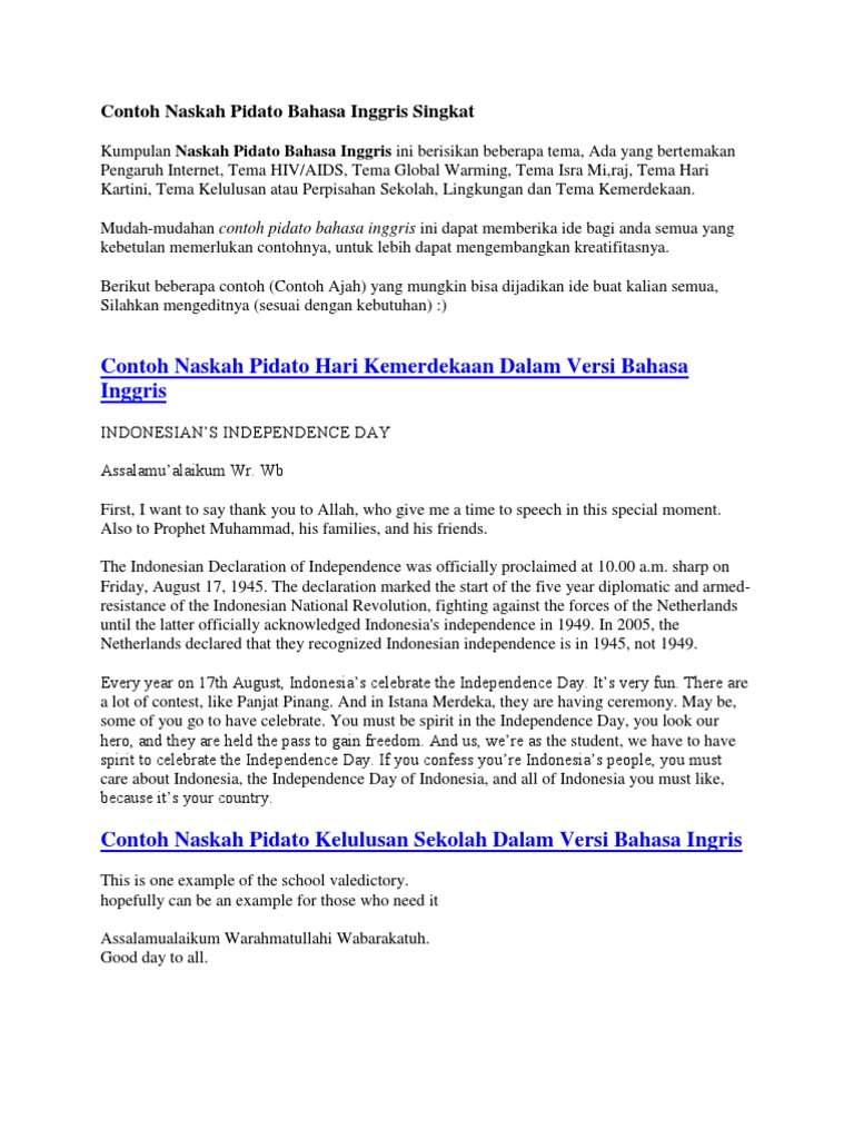 Contoh Naskah Pidato Bahasa Inggris Singkat Indonesian via www.scribd.com